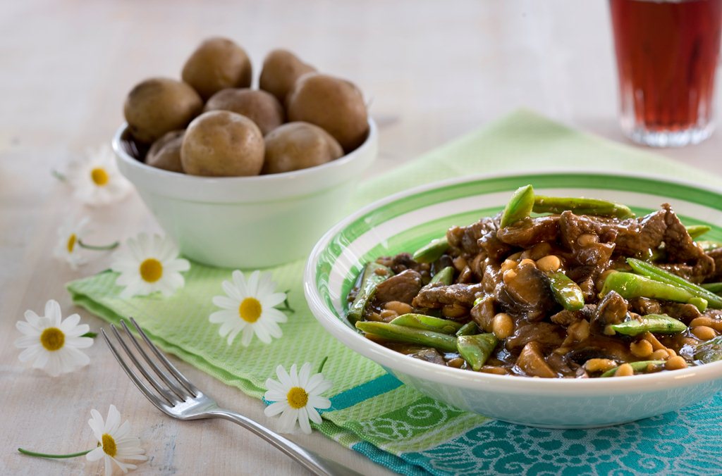 Hverdagsgryte med strimlet svinekjøtt