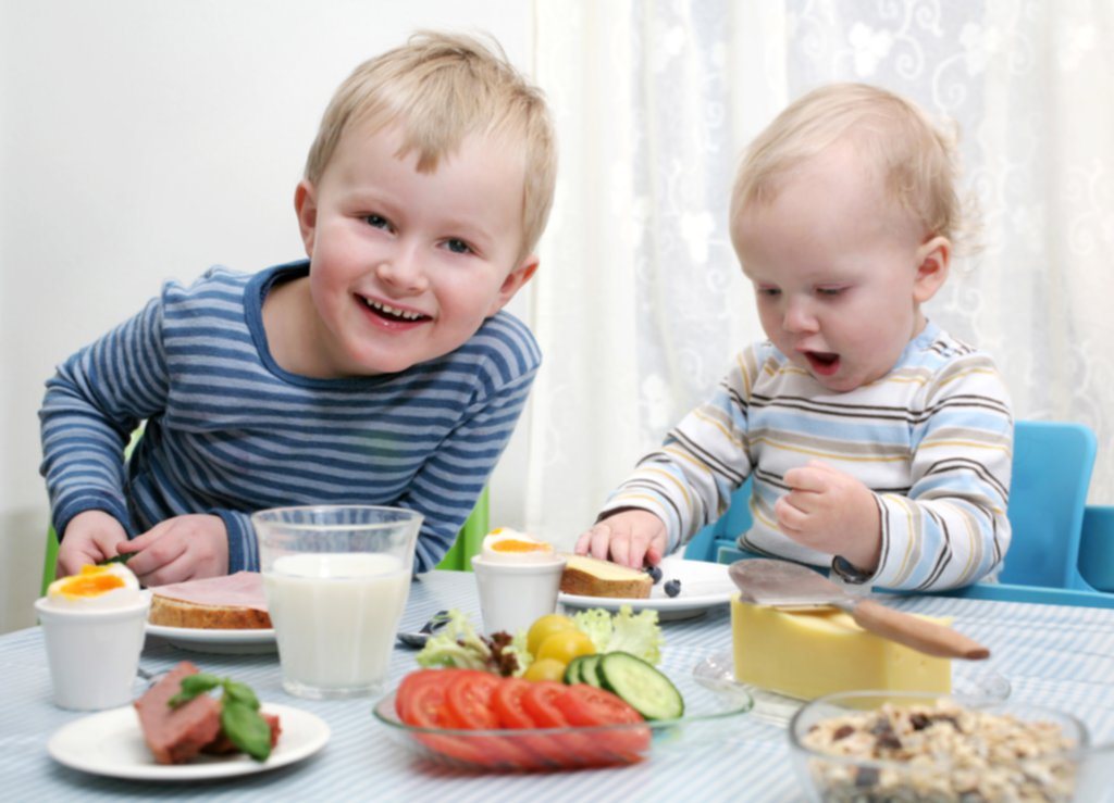 Magnus og Amund koser seg ved frokostbordet.