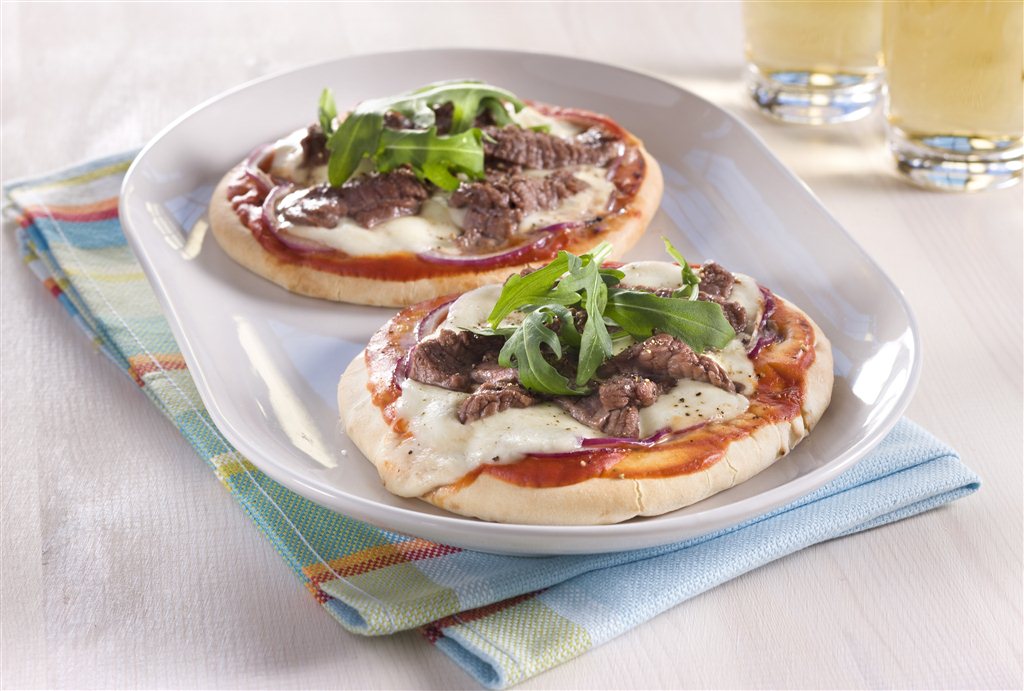 Pitapizza med biffstrimler