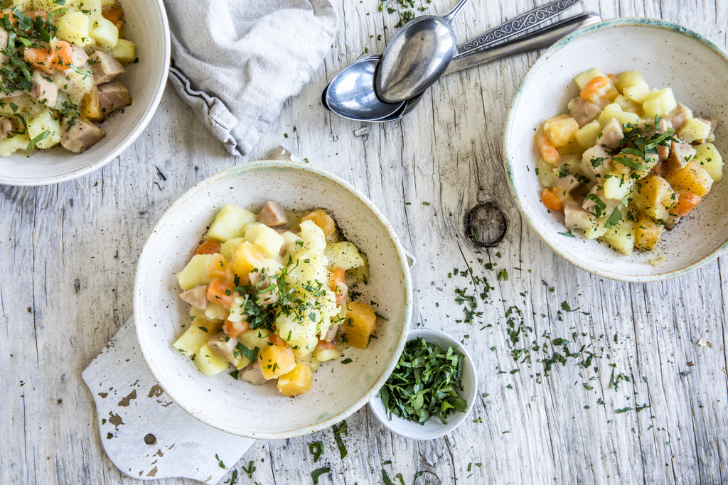 Rask gryte med grønnsaker og svinekjøtt