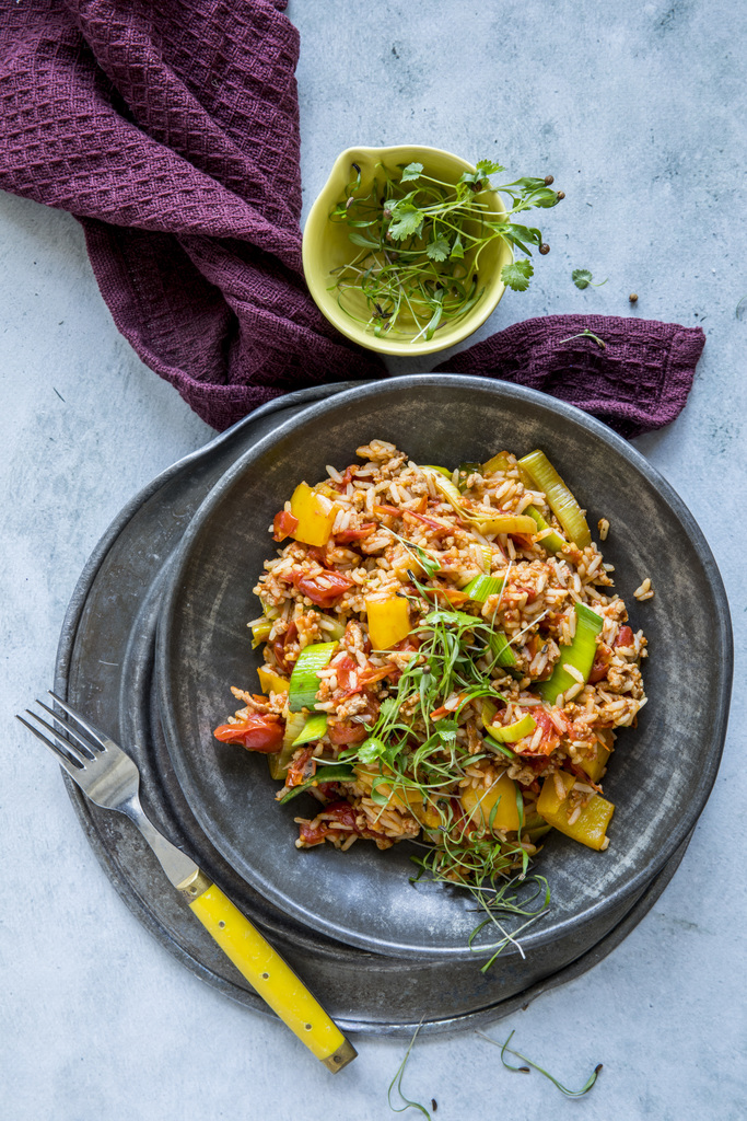 Hverdagsgryte med strimlet svinekjøtt - høydebilde