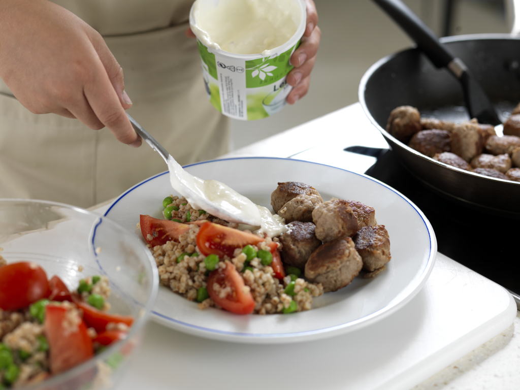 Kjøttboller med byggrissalat