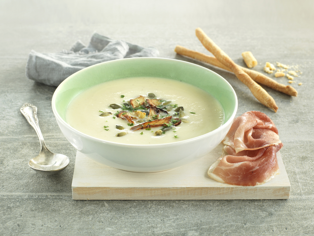 Jordskokksuppe med spekeskinke